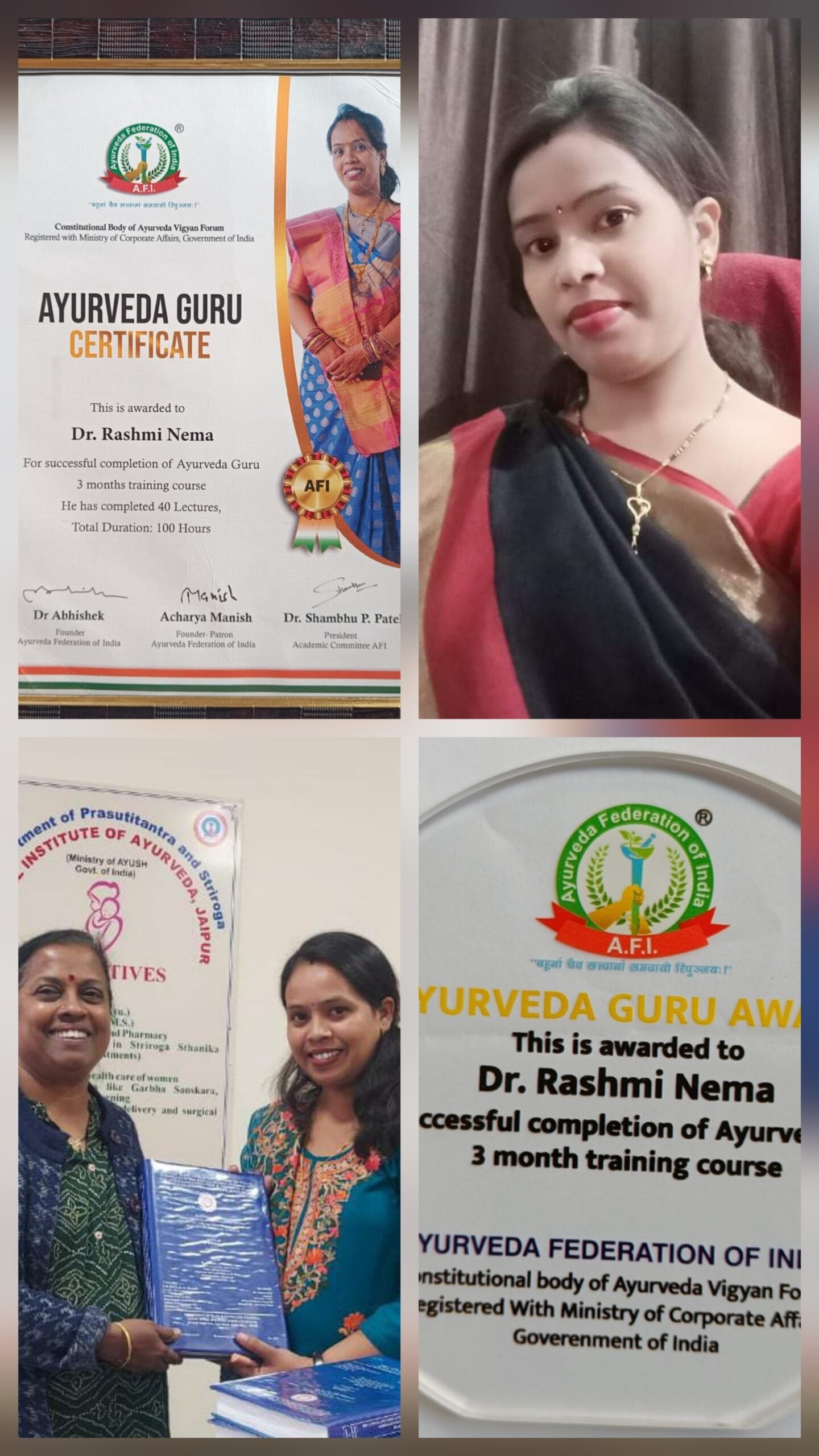डॉ. नेमा ने छिंदवाड़ा एवं जयपुर में अब तक 104 निःसंतान दंपत्तियों का सफल उपचार कर सरकार के “सुप्रजा अभियान” को नई दिशा और गति प्रदान की है। साथ ही उन्होंने राष्ट्रीय आयुर्वेद संस्थान के स्त्री एवं प्रसूति विभाग में एक महत्वपूर्ण शोध पत्र भी प्रस्तुत किया, जिसे उल्लेखनीय माना जा रहा है।